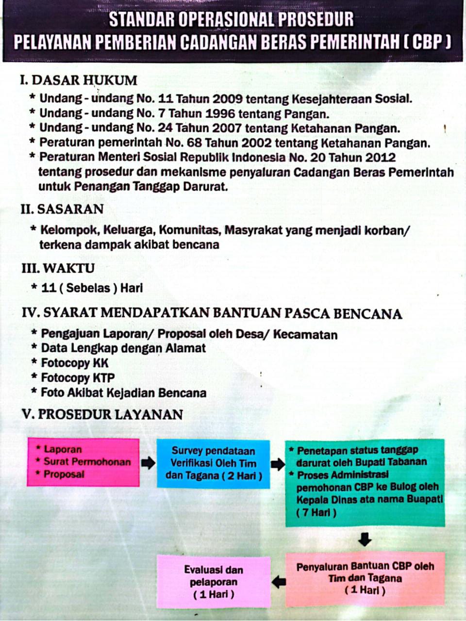Standar Operasional Prosedur Pelayanan Pemberian Cadangan Beras Pemerintah ( CBP ), Selengkapnya Bisa Di Lihat Disini