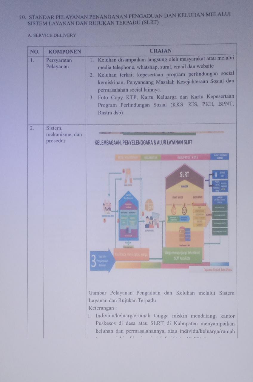 Standar Pelayanan Penanganan Pengaduan dan Keluhan Melalui Sistem Layanan dan Rujukan Terpadu ( SLRT ), Selengkapnya Bisa Di Lihat Disini
